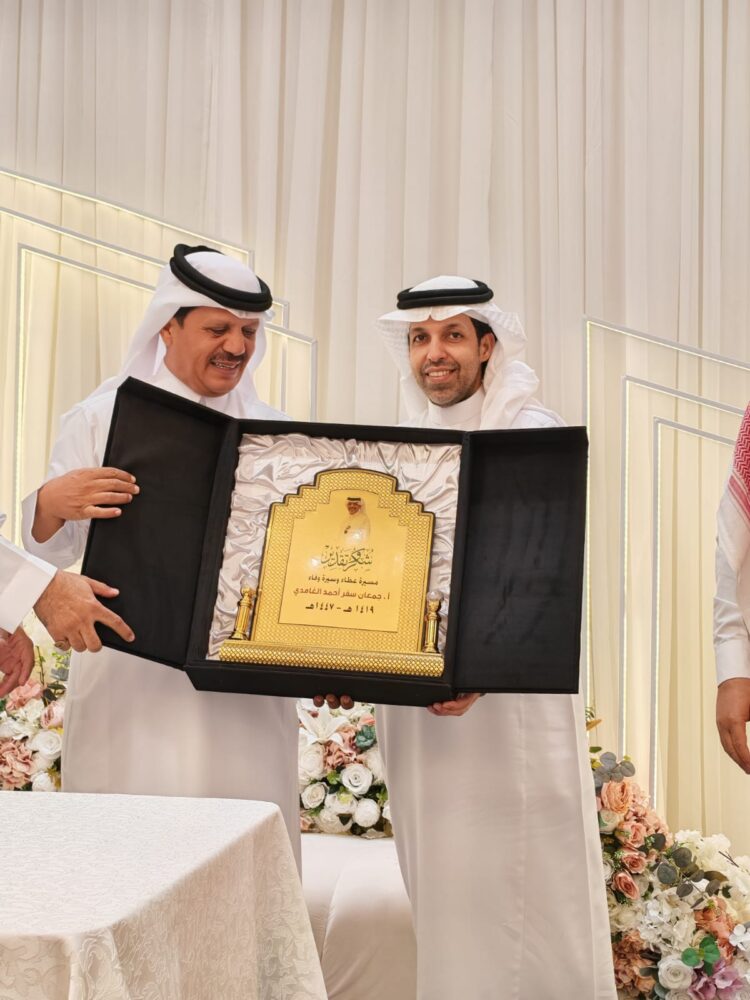 وحضر الحفل جمع من زملاء وأصدقاء المحتفى به يتقدمهد أحمد الدماك وابنه سعد بن أحمد واخيه علي بن سفر , وقدم عدد منهم الدروع والهدايا التذكارية للمحتفى به, وبهذه المناسبة قدّم الأستاذ “جمعان بن سفر” شكره لزملائه على مشاعرهم النبيلة. وأن ذلك ليس مستغربا من أهل الجود والكرم والقى كلمته التي اثنى فيها على الحضور ممزوجه بعبارات شعريه .